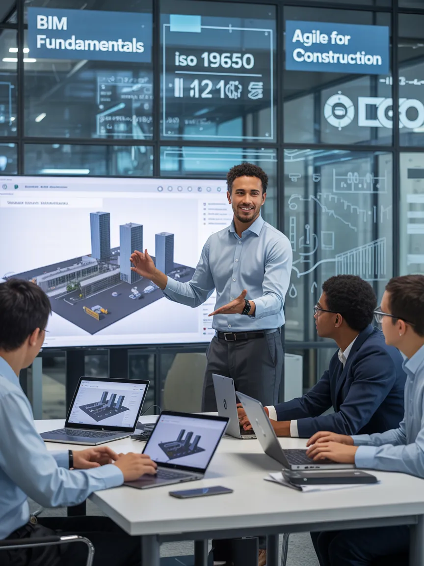 Cursos: BIM Fundamentals, BIM Manager ISO 19650, Agile for Construction.